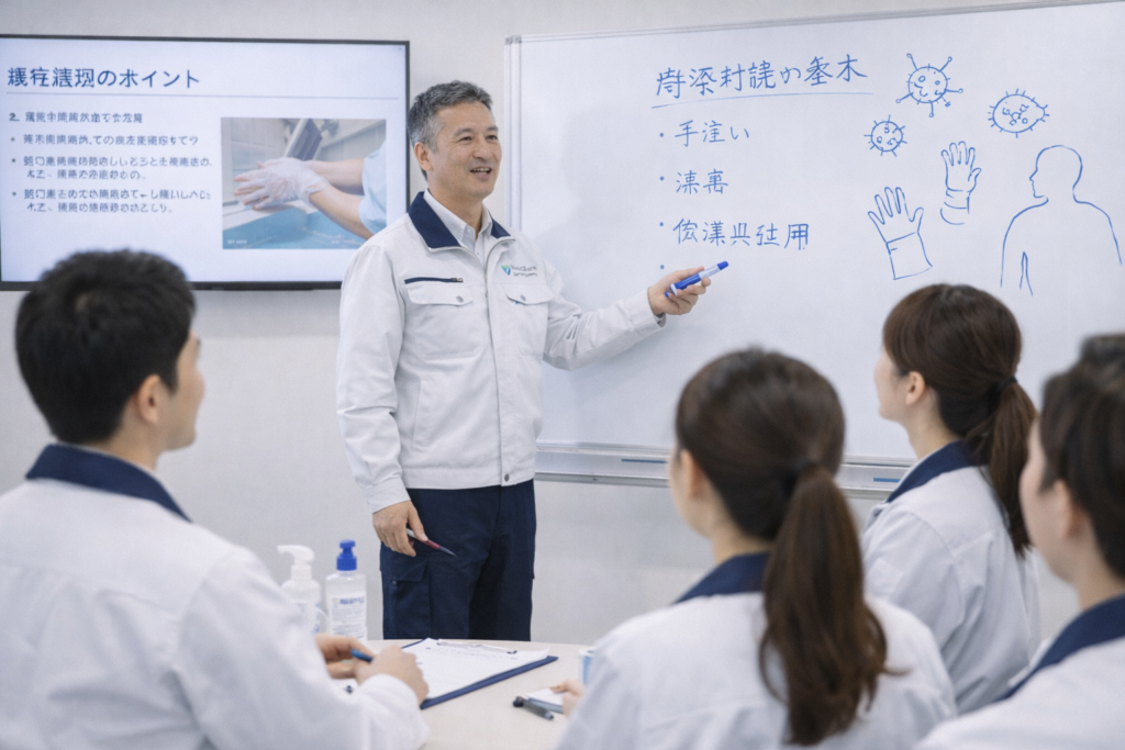 感染予防計画の立案・実行を支援します。清掃だけでなく衛生状態の改善提案も行います。